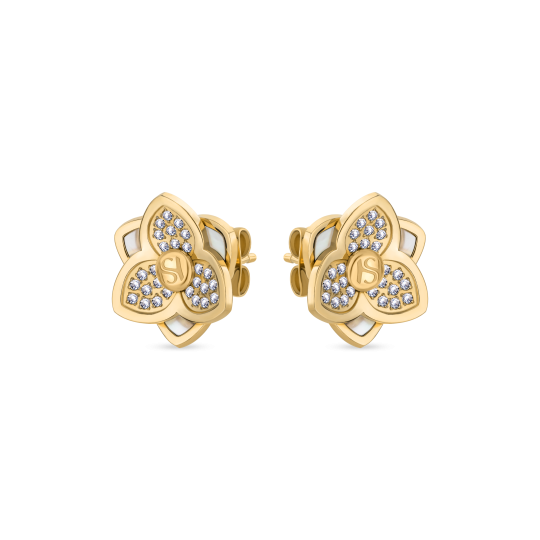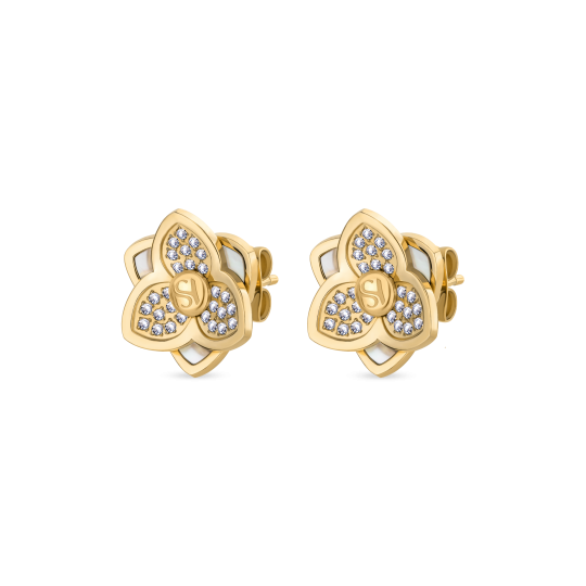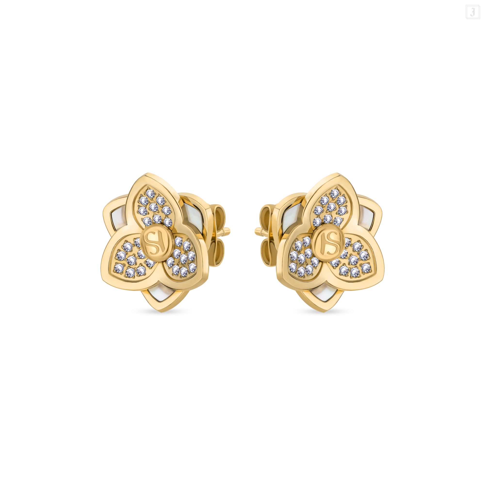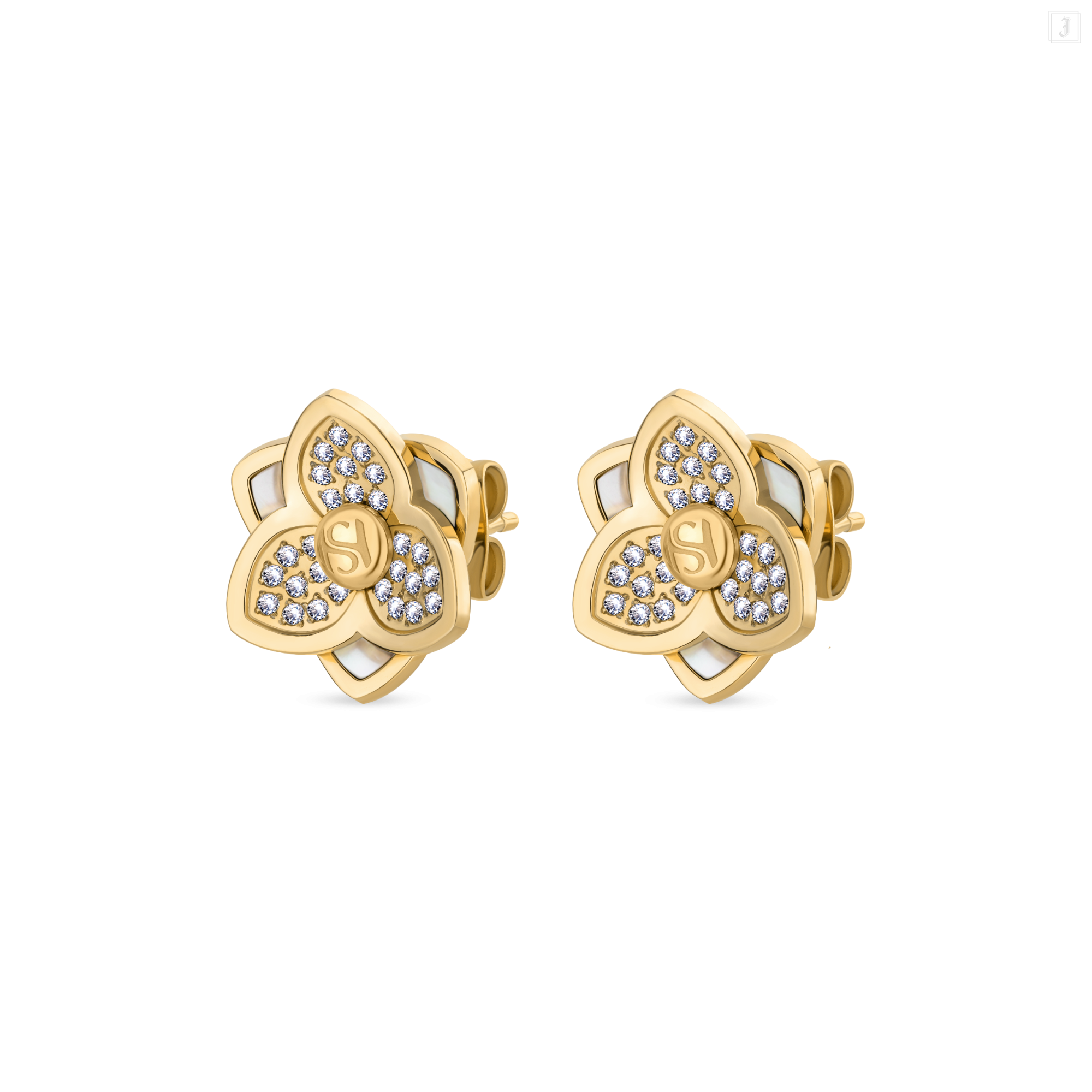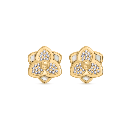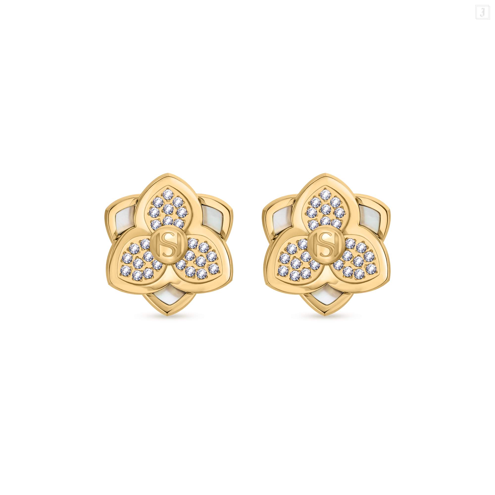 A captivating blend of classic and modern design, Burj earrings are a true statement piece. The dazzling stud, featuring a six-petal motif, pays homage to the timeless grandeur of the world’s tallest tower. Crafted in gold-plating and mother of pearl, they add a touch of depth and brilliance to your look. |