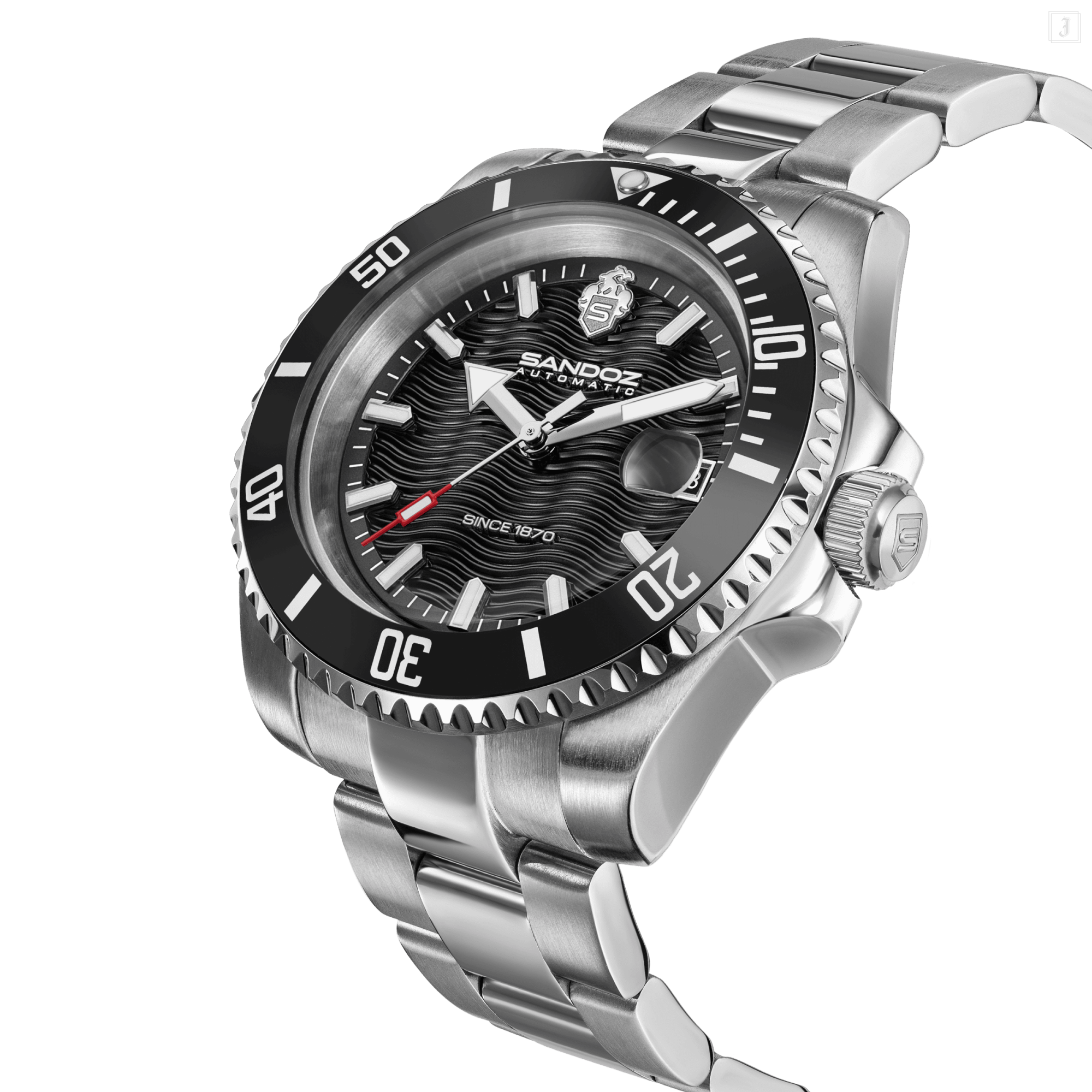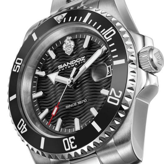 Dedication, performance, and attention to detail – Chaumont embodies it all. With a bold black ceramic dive bezel and a square crown guard, it’s built to look tough and act the part. Inside, an automatic three-hand movement with a magnified date window keeps things dependable. The black dial stays sharp and legible thanks to luminous markers and hands, while subtle wave-pattern detailing adds an unexpected design touch. It’s a watch that balances utility with presence. Sporty but also refined in all the right places.