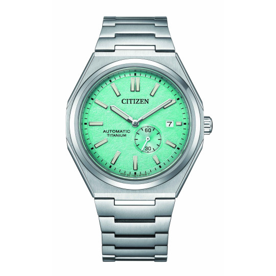 Pairing classic proportions and innovative technology with a distinctly modern style, we present our new Zenshin Automatic series. Made with our proprietary material, Super Titanium™, which is five times harder and 40% lighter than stainless steel and is scratch- and rust-resistant, this sporty timepiece features a 40.5mm silver-tone Super Titanium™ case that is elevated with finely brushed and polished finishing while being secured to the wrist with an integrated matching bracelet. On the dial, a textured light blue color is accented with an outer minute ring in black, with silver-tone details and luminous hands and markers. A date window at the 3 o'clock position adds daily utility, while an off-center sub-dial beside it indicates the running time powered by the mechanical movement inside. Water resistant to 100 meters. Automatic caliber 8213.