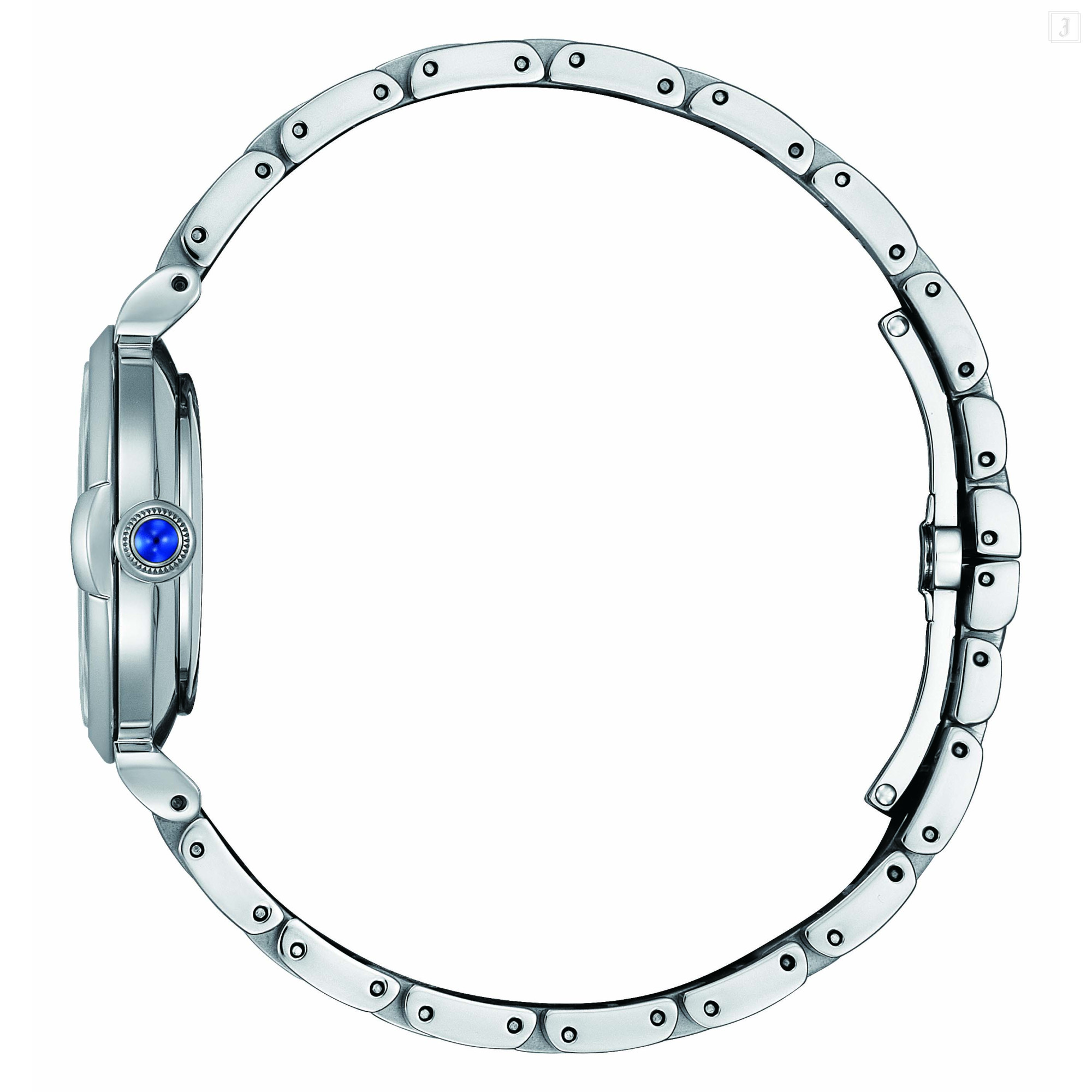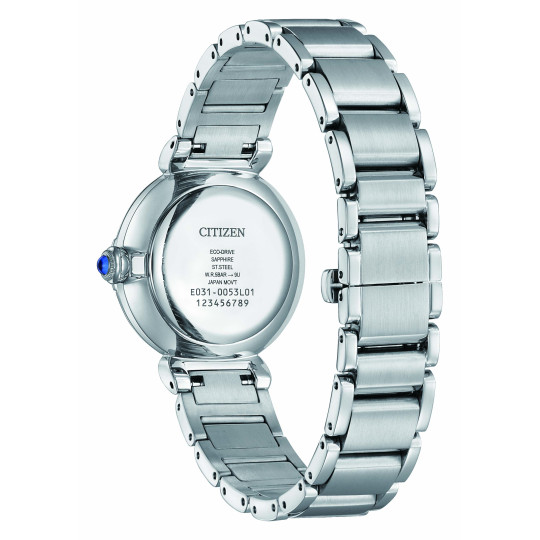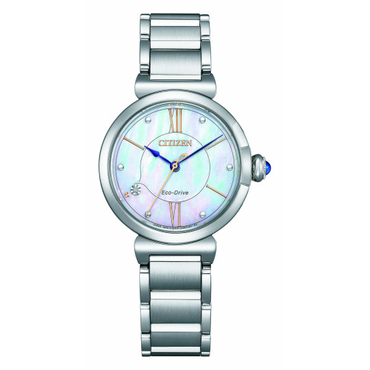 Classic lines and hints of romance make this newest piece to our ladies' collection, the Citizen L May bells, a glamorous addition of sustainable luxury. With a case design inspired by May bells featuring the curved, sleek lines of the flowers, the bezel shape has a distinct feature at the 3 o’clock position, where the crown resembles an elegant perfume stopper. Featuring a white, mother-of-pearl dial made of recycled materials, including a recycled polycarbonate base under the dial, and showcased on a sleek, silver-tone stainless steel case and bracelet. The dial also has a diamond that gives focus to the 8 o’clock position and is finished with a sapphire crystal. Sustainably powered by any light with our proprietary Eco-Drive technology that never needs a battery, this elegant women’s watch is the perfect dressed up look with high-powered performance. Caliber E031. |