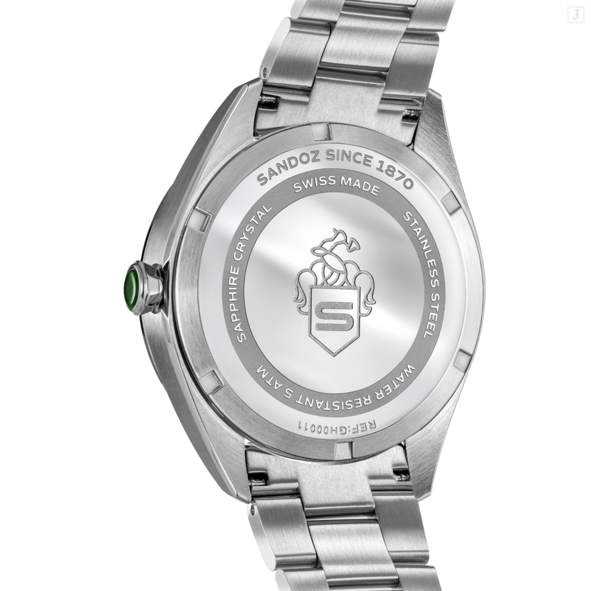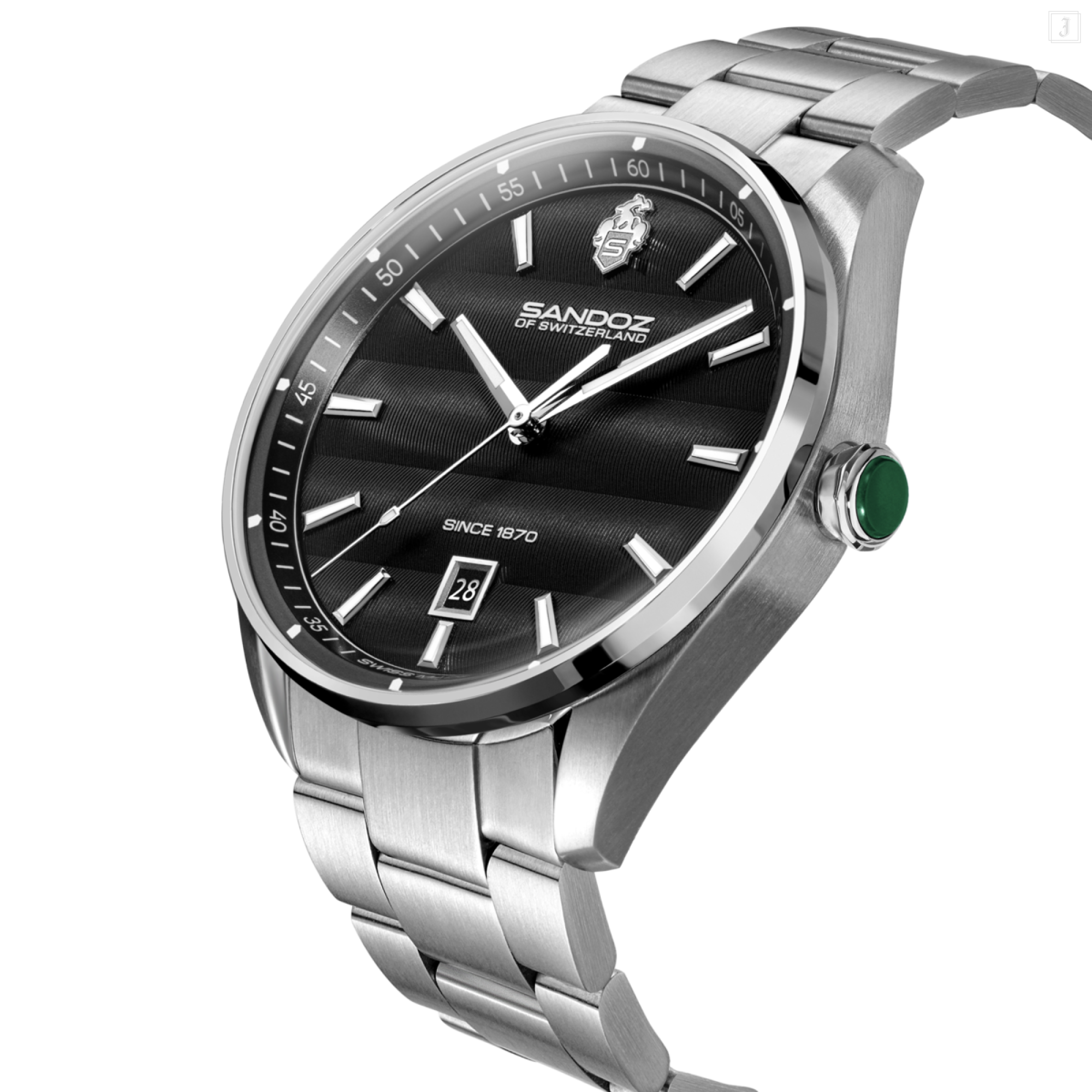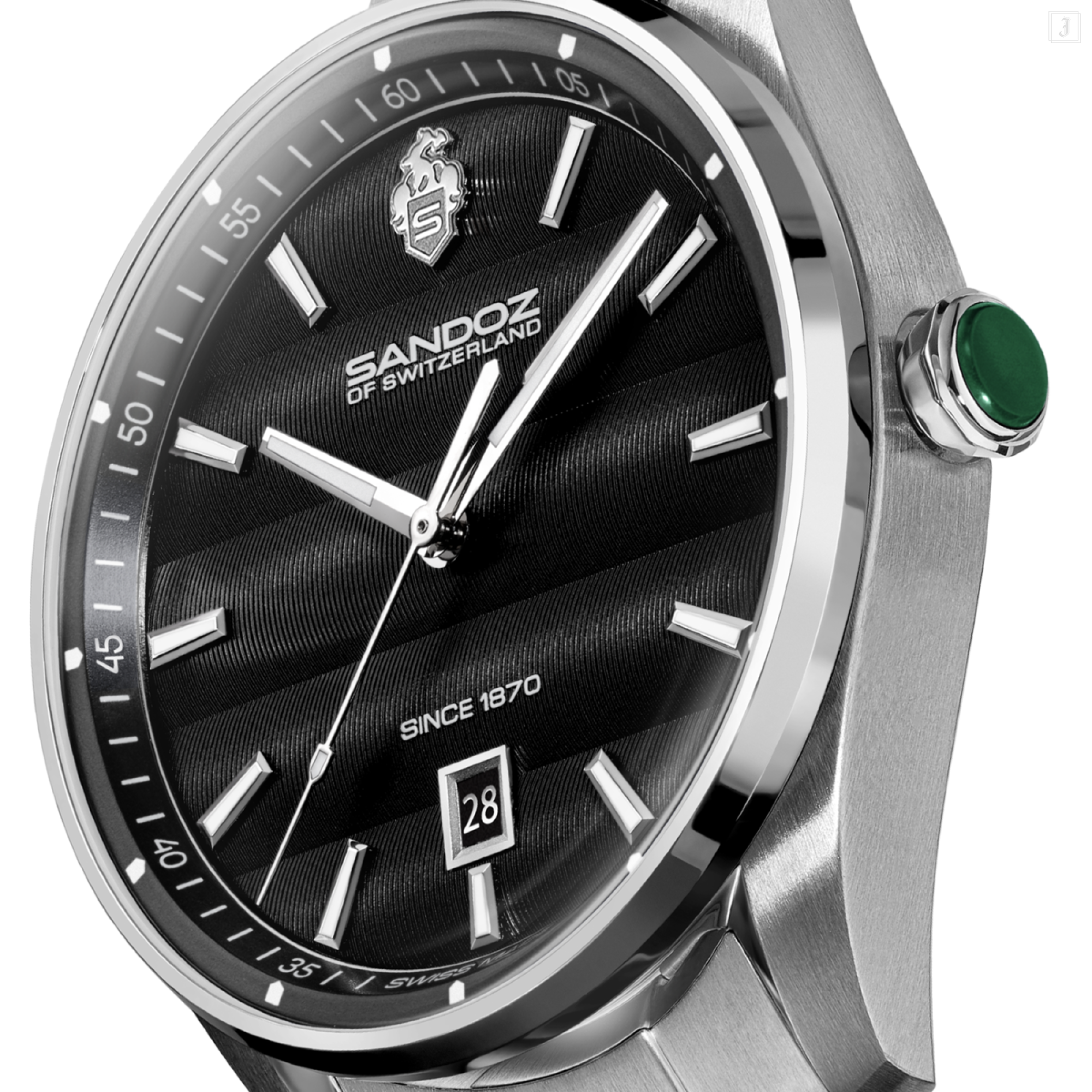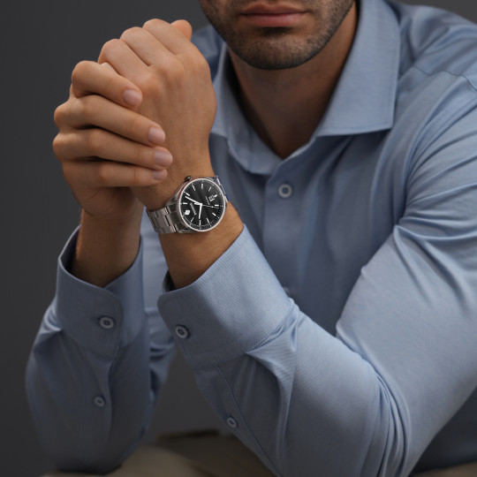 Combining present-day practicality with the revered traditions of horology, Bachelin is at once contemporary and enduring. Freshly modern yet quietly timeless, it is a celebration of design distilled to its purest form. The 40.5mm case frames a black dial with subtle Côtes de Genève detailing under sapphire crystal, where silver-toned hands - subtly luminous, glide with poise. A discreet date window at six o’clock aligns with the refined symmetry, while the Swiss Made seal grounds it in watchmaking excellence. |