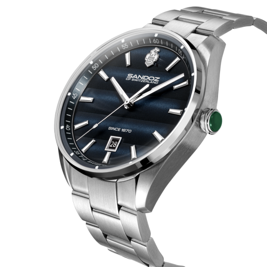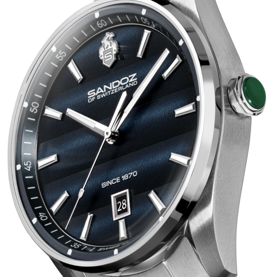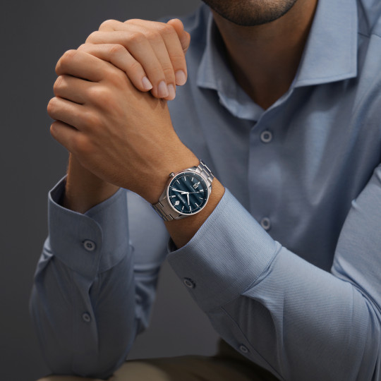 Combining present-day practicality with the revered traditions of horology, Bachelin is at once contemporary and enduring. Freshly modern yet quietly timeless, it is a celebration of design distilled to its purest form. The 40.5mm case frames a blue dial with subtle Côtes de Genève detailing under sapphire crystal, where silver-toned hands - subtly luminous, glide with poise. A discreet date window at six o’clock aligns with the refined symmetry, while the Swiss Made seal grounds it in watchmaking excellence.