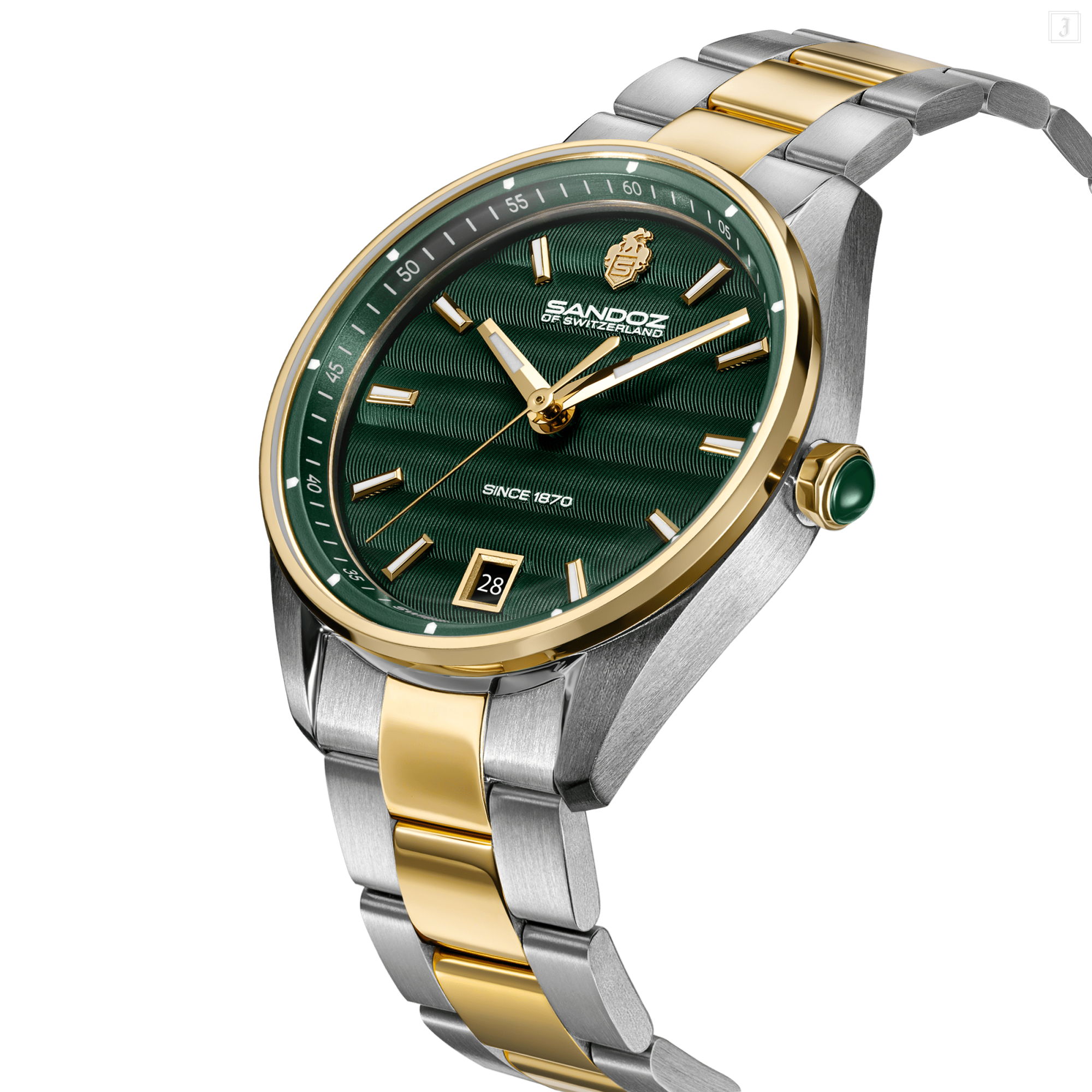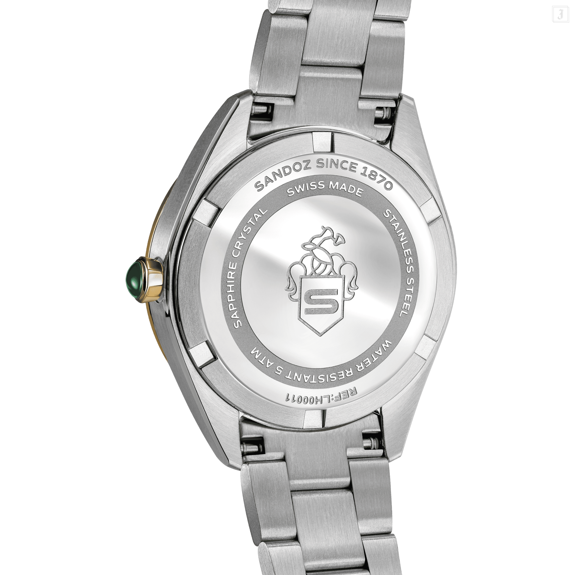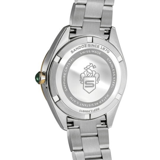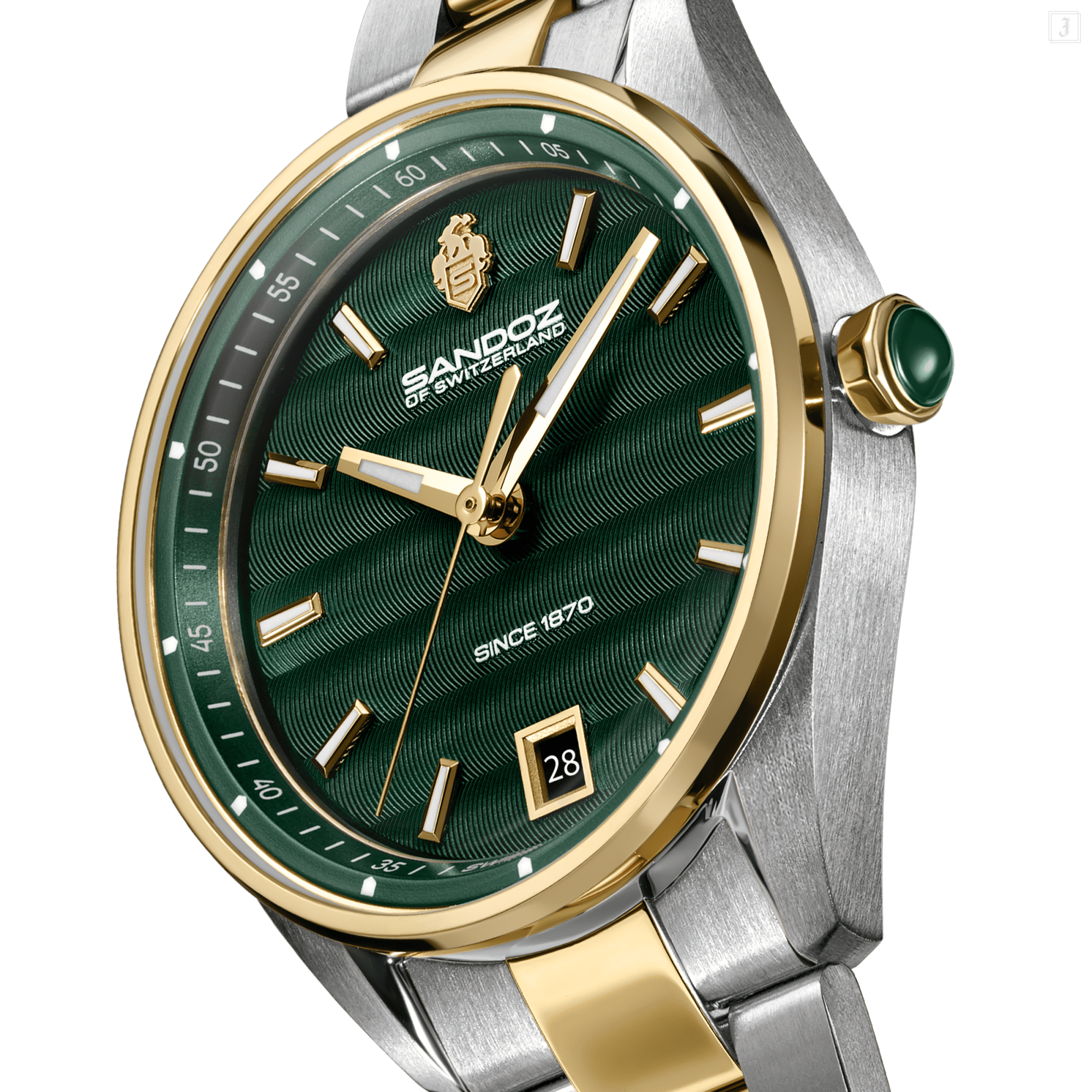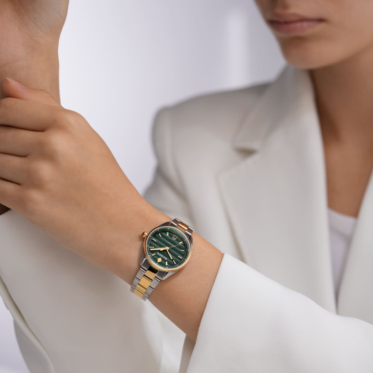 Combining present-day practicality with the revered traditions of horology, Bachelin is at once contemporary and elegant. The green dial, detailed with subtle Côtes de Genève striping, holds its own beneath a flat sapphire crystal. The yellow gold hands and markers know when to glow. A cabochon crown completes the look, refined and elegant. A date window nestles at six o’clock, mirroring the tone of the watch’s palette. |