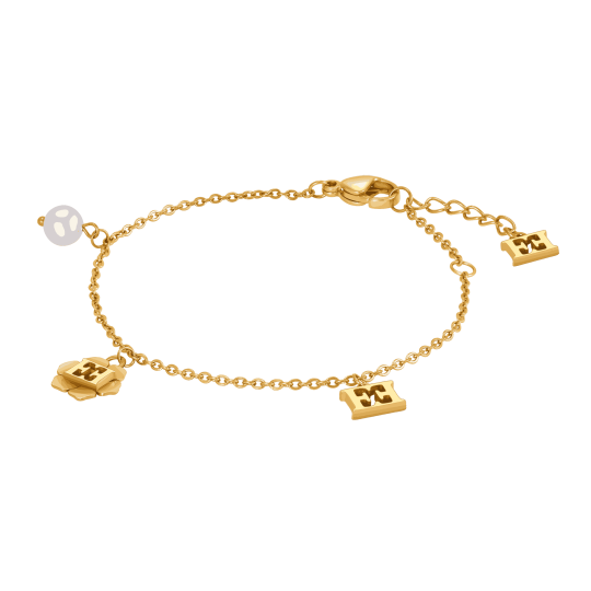 | Escada's Ava bracelet brings floral charm to life with a delicately crafted flower pendant at its center. On either side, a dazzling pearl and the iconic Escada logo create a harmonious balance of elegance and boldness, making this piece a refined yet striking addition to any jewelry collection. |