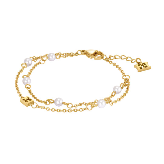 A masterful blend of gold plating, crystals, and Escada’s signature refinement, Florence bracelet is designed to captivate. Featuring a double-chain composition, adorned with crystals, while the other layer showcases Escada’s gold-plated logo, making this bracelet a vision of contemporary glamour. |