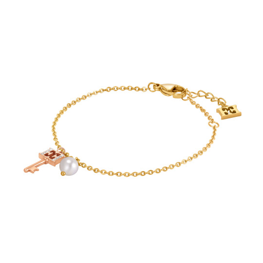 | A symbol of elegance, Escada's Florence bracelet reimagines classic charm jewelry with a tose-gold key-shaped pendant. Featuring Escada’s iconic logo and a delicate pearl, this piece is a timeless treasure, unlocking the perfect balance of sophistication and modern allure. |