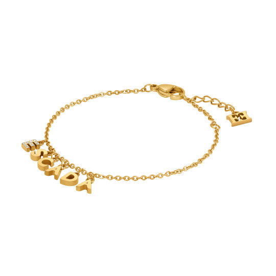 | The ultimate embodiment of Escada’s playful yet sophisticated spirit, Belle bracelet features dainty ESCADA letter charms dancing along a delicate chain. Designed for the woman who embraces her individuality, this bracelet is a charming statement of confidence, grace, and a love for luxury in its most effortless form. |