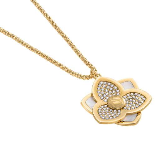 A captivating blend of classic and modern design, Burj necklace is a true statement piece. The dazzling pendant, featuring a six-petal motif, pays homage to the timeless grandeur of the world’s tallest tower. Crafted in gold-plating and mother of pearl, it adds a touch of depth and brilliance to your look. |