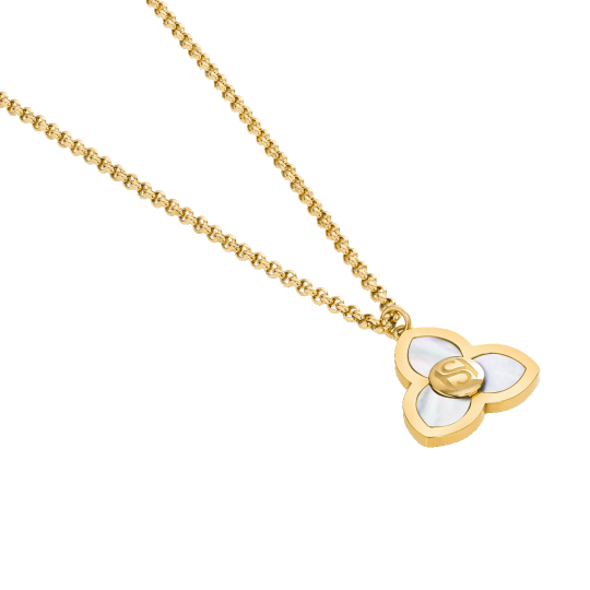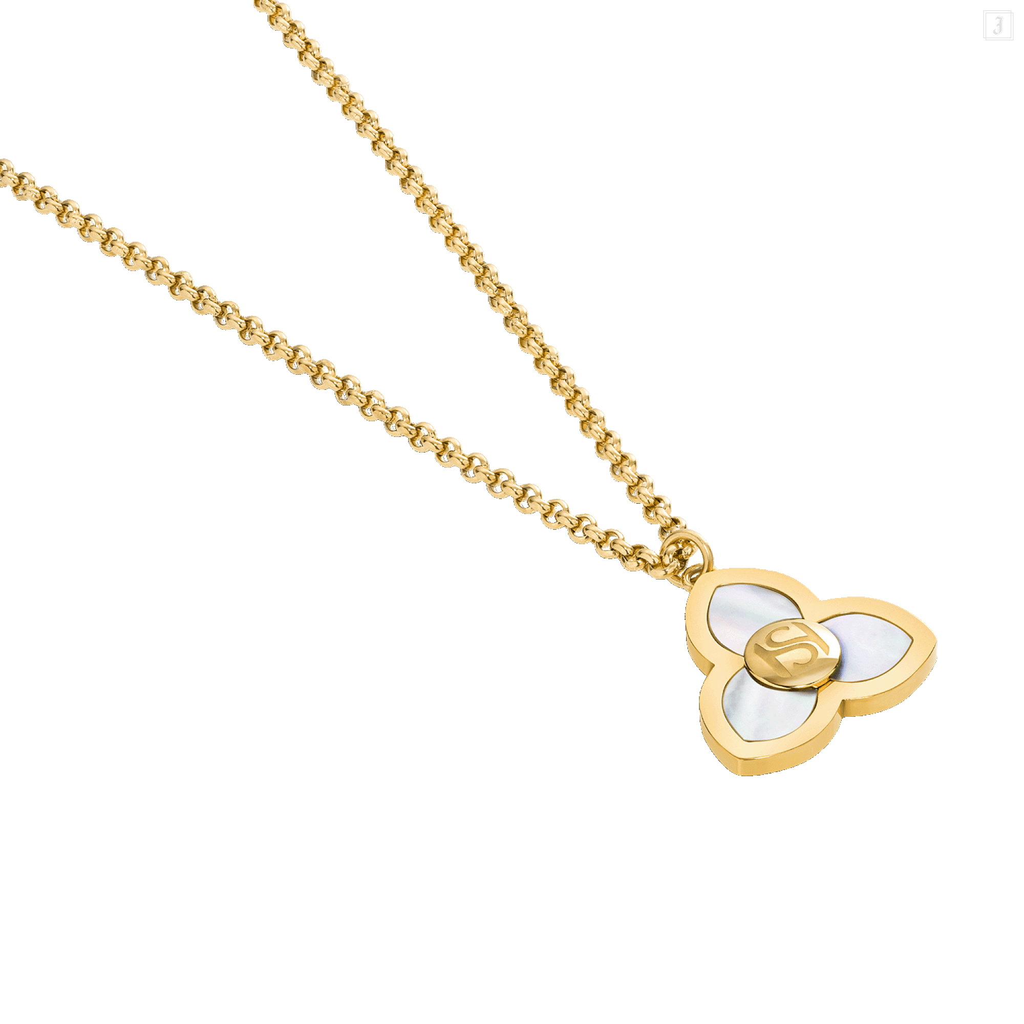 A captivating fusion of heritage and modernity, Burj necklace is a striking statement piece inspired by the soaring elegance of the world’s tallest tower. The mother of pearl pendant in a three-petal motif - echoes architectural lines with refined femininity. Finished in radiant gold plating, this luminous design brings depth, balance, and a bold sense of presence to any ensemble. |
