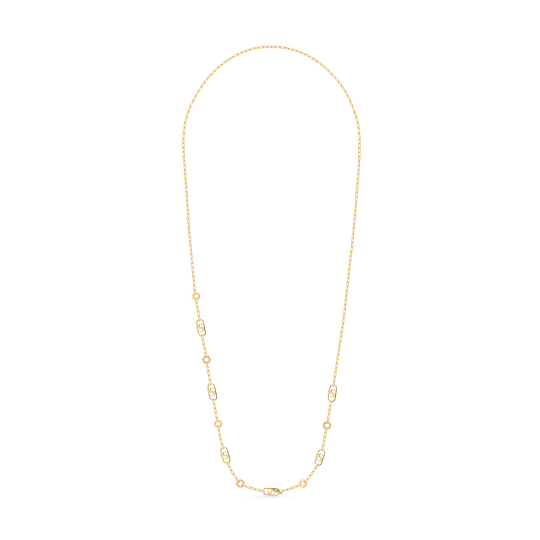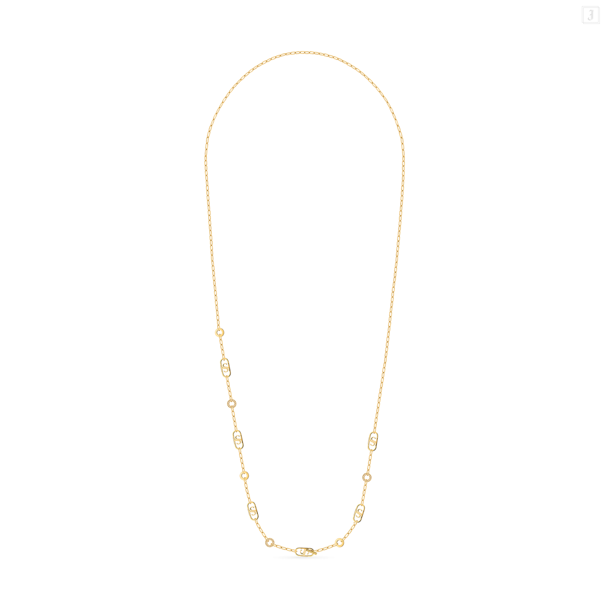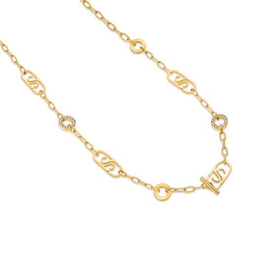 Saint Honoré's Arc necklace draws its strength from structure and its beauty from detail. A gold-plated arch pendant, with the cut-out SH emblem nestled within, is accentuated by a row of delicate crystal rings that bridge the form - an elegant nod to Paris’s architectural splendor. Poised and polished, it’s a signature piece designed to inspire. |