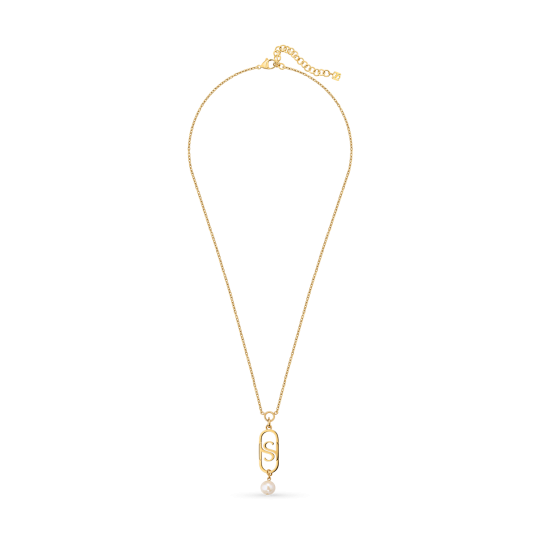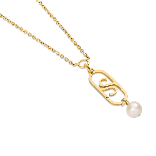 In this sleek variation of Arc necklace, the cut-out SH logo sits within an arch pendant, subtly accentuated by a luminous pearl drop beneath. Suspended from a fine gold-plated chain, this necklace is a refined expression of minimalist luxury - perfect for elevating everyday elegance. |